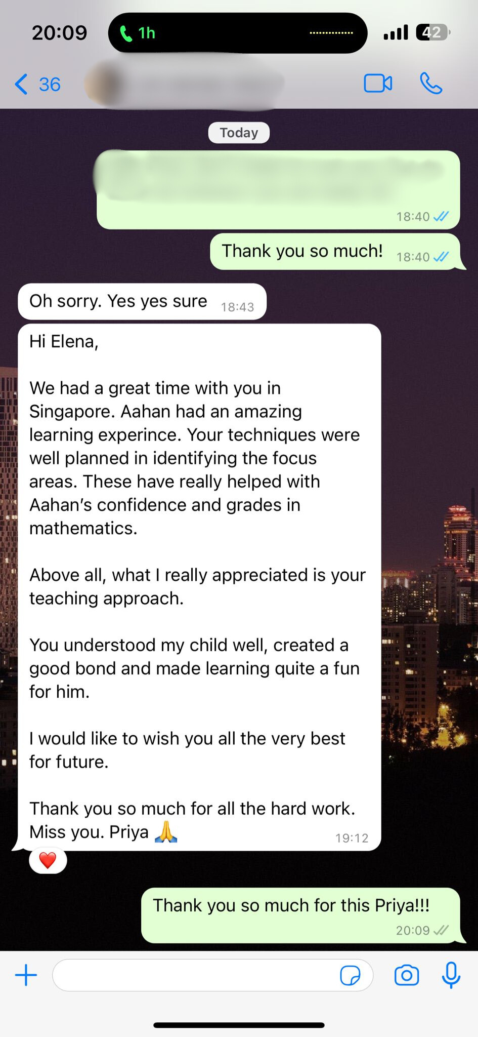 "Aahan had an amazing learning experience. Your techniques were well planned in identifying the focus areas. They have really helped with Aaran's grades in Mathematics"